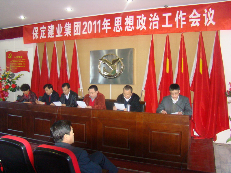 2011年3月8日,保定建業(yè)集團有限公司2011年思想政治工作會議在莊嚴的國歌聲中拉開了序幕,會議由黨委辦公室主任馬亞軍主持,集團各公司黨、政、工、團、婦、武裝、保衛(wèi)負責(zé)人參加會議。